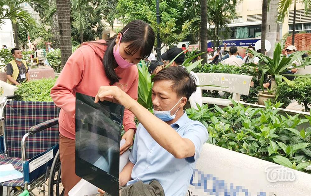 Ngày 6/10, chị Ngọc Tuổi có mặt tại phòng Điện tim và phòng chụp X-quang của Bệnh viện Chợ Rẫy để lấy kết quả xét nghiệm cho chồng là anh Phan Văn Tâm - người đàn ông bị rắn hổ mang cắn hồi tháng 8/2020 vừa qua.