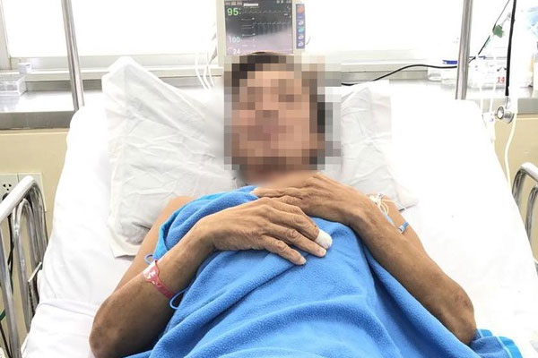 Tuy nhiên, sau đó, bệnh nhân gồng người, tím tái, thở gấp. Các bác sĩ chẩn đoán bệnh nhân bị suy hô hấp do rắn hổ mang chúa cắn. Người đàn ông được chuyển đến Bệnh viện Chợ Rẫy trong tình trạng thở máy.