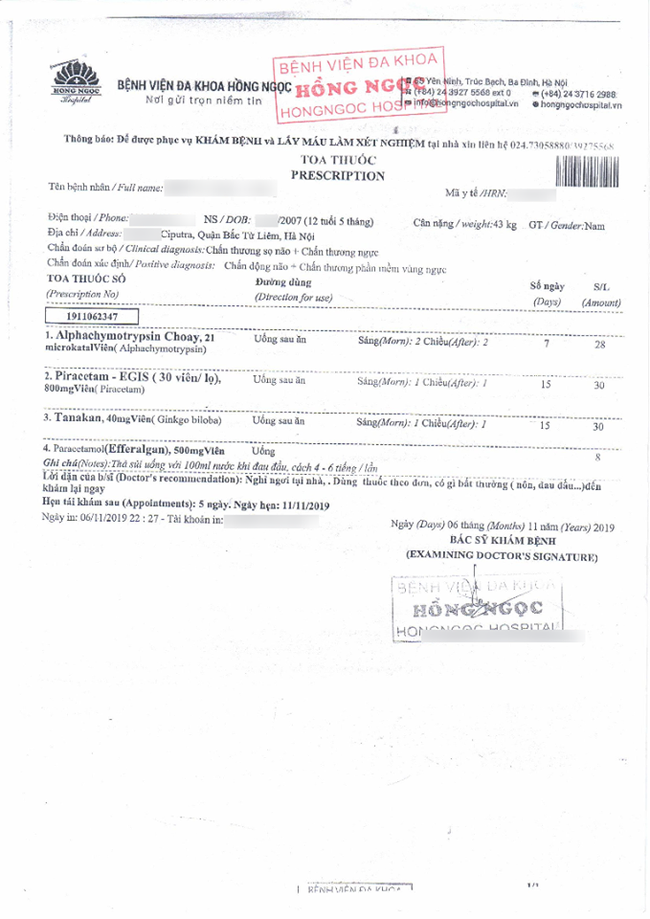 Bệnh viện kết luận cháu N.A bị chấn thương sọ não, chấn thương ngực, chấn động não, chấn thương phần mềm vùng ngực.