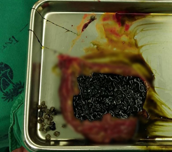 Túi mật của người đàn ông được lấp đầy bởi vô số hạt sỏi đen trông giống như những viên trân châu trà sữa.