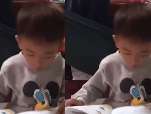 Dù được cắt tóc bằng dụng cụ đặc biệt như vậy nhưng vị khách hàng này rất bình tĩnh. Anh có thể ngồi im để thợ tóc làm nhiệm vụ. Không những thế, anh còn có thể thưởng thức trà như không hề có chuyện gì xảy ra.