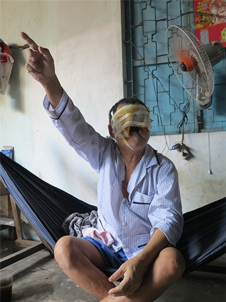 chanh làm căng hết vùng da trán. Hai mắt ông Sĩ không thể nhìn thấy bất