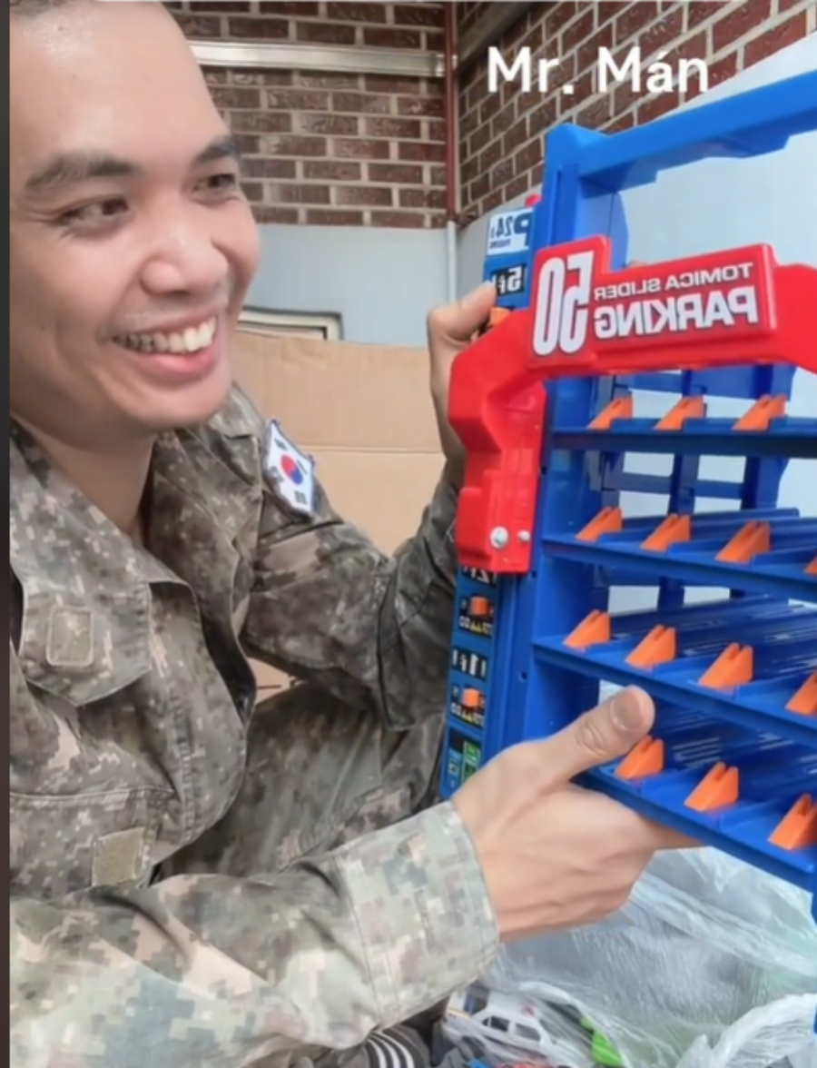 Sau giờ làm, anh thường đi nhặt đồ đạc người bản xứ vứt ở bãi rác. Anh thích gom những món đồ chơi trẻ em.