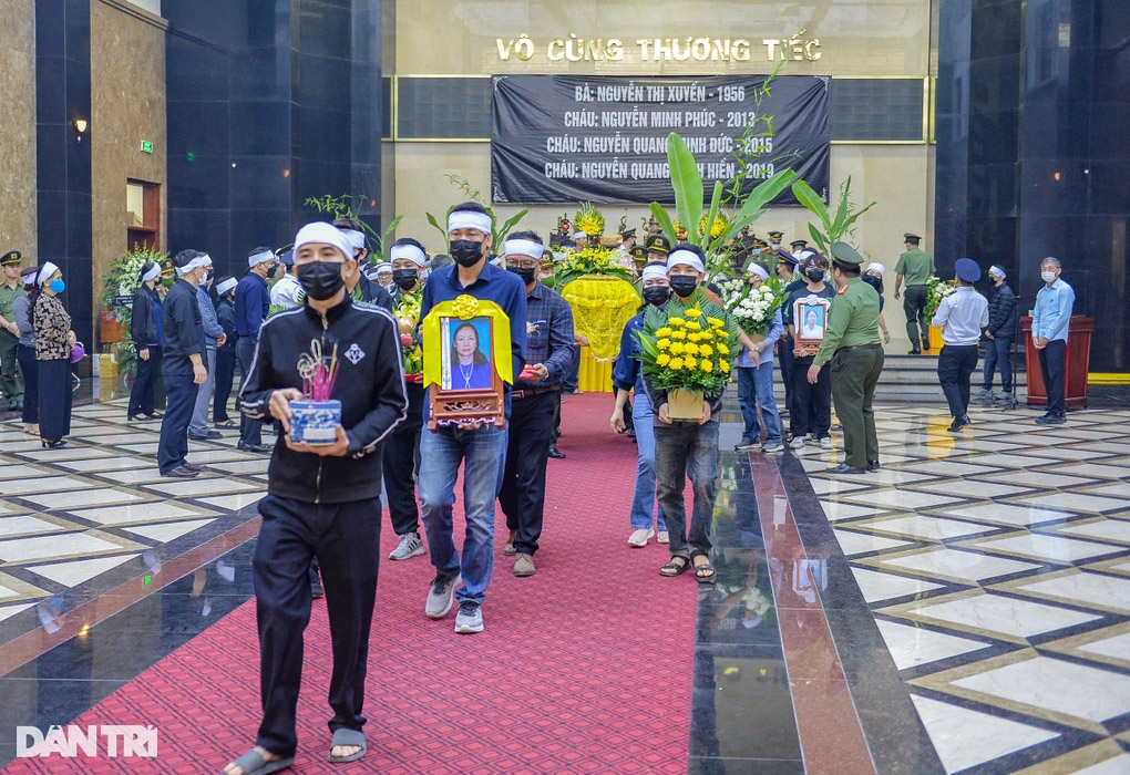 Sáng 14/5, lễ tang 4 bà cháu tử vong trong vụ cháy ở phố Thành Công (tổ dân phố số 8, phường Quang Trung, quận Hà Đông, Hà Nội) được tổ chức tại nhà tang lễ Bệnh viện Quân y 103.