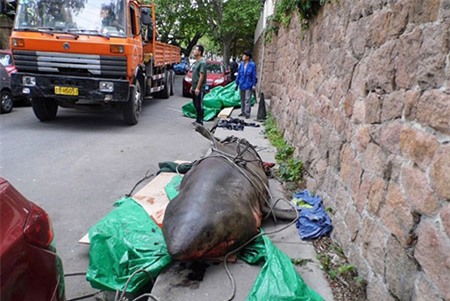 Vào ngày 19/5 vừa qua, những người đi đường tại thành phố Thanh Đảo, tỉnh Sơn Đông (Trung Quốc) đã rất ngạc nhiên khi chứng kiến cảnh tượng một con cá mập đang được vận chuyển vào một căn hộ bên ven đường.
