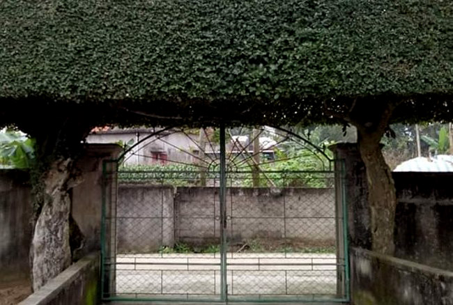 Chiếc cổng duối cổ có chiều dài tán là 7 mét rợp một bóng xanh mát.