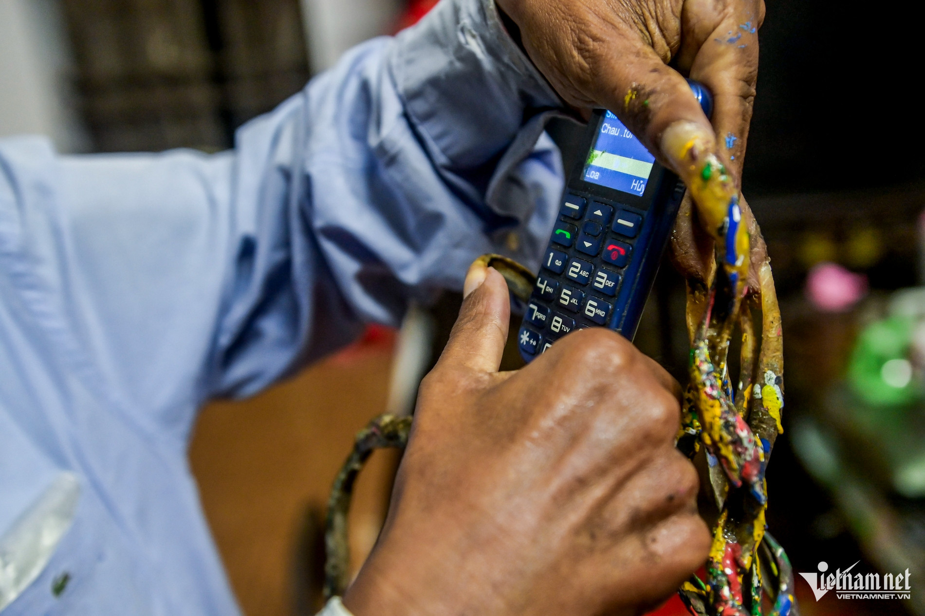 Từ khi móng dài hơn và xoắn lại, tôi chỉ lau lòng bàn tay chứ không cọ rửa móng nữa vì cứ ngâm vào nước là móng nhũn như mì tôm, rất dễ gãy. Móng tay của tôi có nhiều màu là do vữa xi măng và sơn vẽ bám vào trong quá trình làm việc”, ông Huyền cho hay.