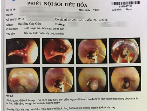 Tại bệnh viện ĐK Hùng Vương (tỉnh Phú Thọ) các BS tiếp nhận bệnh nhân trong đêm trong tình trạng nguy hiểm, với những dấu hiệu của xuất huyết tiêu hóa nặng, các bác sĩ phòng cấp cứu đã ngay lập tức chuyển bệnh nhân đến phòng nội soi tiêu hóa, bên cạnh đó chuẩn bị máu, huyết tương và các phương tiện cầm máu để truyền cấp cứu cho bệnh nhân.