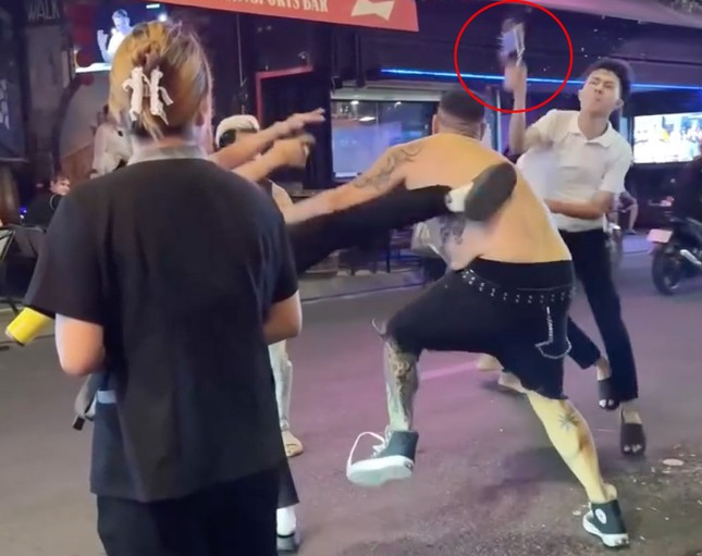 Theo nội dung clip, người đàn ông nước ngoài cởi trần, mặc quần short bị 4 thanh niên dùng tay, chân tấn công trước sự chứng kiến của nhiều người. Đỉnh điểm, một thanh niên cầm chai bia tấn công người đàn ông nước ngoài nhưng trúng vào lưng.