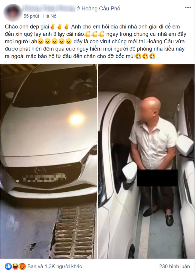 "Chào anh đẹp giai. Anh cho em hỏi địa chỉ nhà anh giai đi để em đến xin quỳ lạy anh 3 lạy cái nào. Ngay trong chung cư nhà em đấy mọi người ạ, Đây là con virut chủng mới tại Hoàng Cầu vừa được phát hiện đêm qua, cực nguy hiểm mọi người đề phòng nha. Kiểu này ra ngoài mặc bảo hộ từ đầu đến chân cho đỡ bốc mùi".