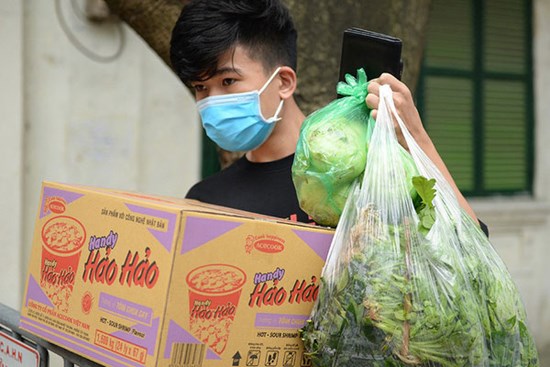 Sáng 7/3, nhiều người dân sinh sống trong khu vực cách ly trên phố Trúc Bạch (Ba Đình, Hà Nội) đã nhận được nhiều đồ nhu yếu phẩm do người thân, bạn bè chuyển tới