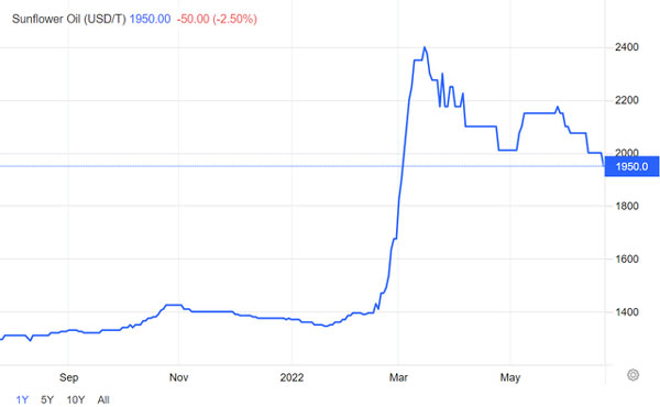 Giá dầu hướng dương thế giới đã tăng 44% vào cuối tháng 3 so với một năm trước đó, trong khi dầu hạt cải đã tăng 72%, theo báo cáo của công ty nghiên cứu thị trường Mintec.