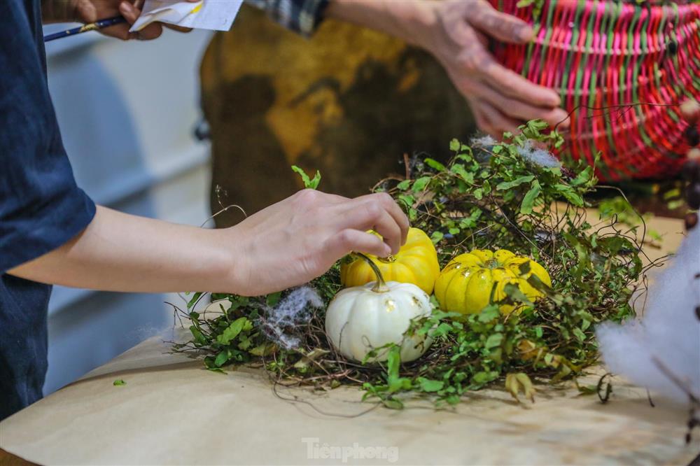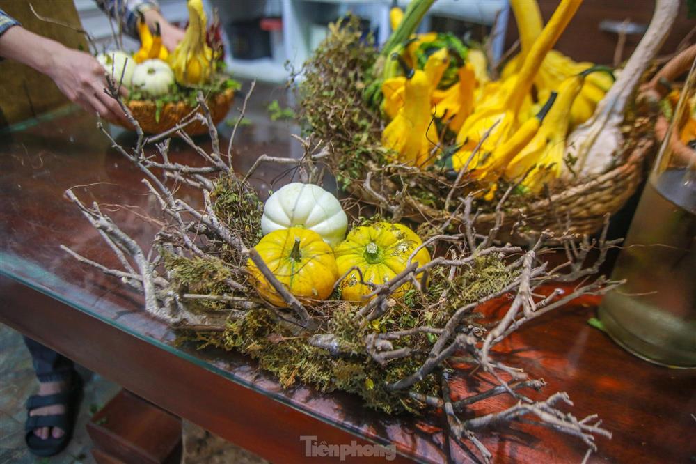 Để phục vụ người tiêu dùng mùa Halloween, nhiều cửa hàng tự tay thiết kế sẵn những giỏ hoa độc lạ có chứa bí ngô hoặc trang trí theo yêu cầu của khách.