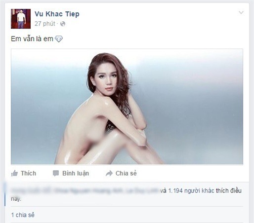 Tháng 1.2015, ông bầu Khắc Tiệp bất ngờ đăng hình Ngọc Trinh lên Facebook kèm chú thích: “Em mãi đẹp trong tôi!”. Trong ảnh, cơ thể Ngọc Trinh chỉ phủ một lớp vải voan mờ. Khi ấy, có người cho rằng ảnh nghệ thuật nhưng cũng có người đánh giá Ngọc Trinh viện nghệ thuật để ‘khoe thân’.
