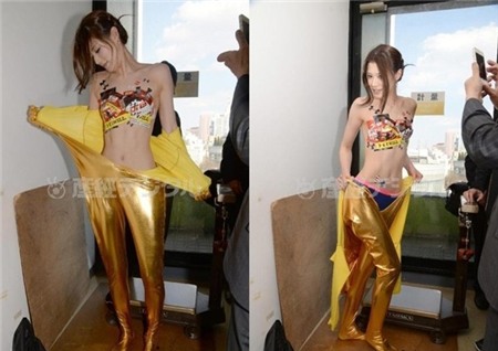 xé toang chiếc áo đang mặc trên người để lộ vòng 1 được... dán chi chít