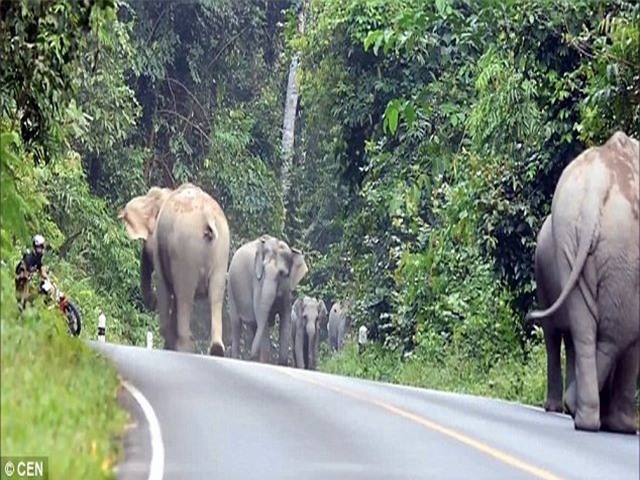 Anh này không biết rằng bầy voi thực sự nổi điên vì tiếng xe máy ầm ĩ mà chúng nghe được trước đó. Anh ta phải bỏ lại chiếc xe máy rồi chạy thẳng vào rừng khi vài con voi đuổi theo sát nút.