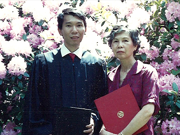 Thuận Phạm chụp hình lưu niệm cùng mẹ tại lễ tốt nghiệp MIT năm 1991