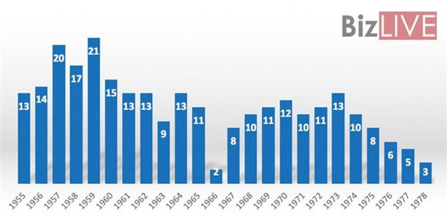 Năm sinh có nhiều người giàu nhất là 1959 (Kỷ Hợi) với 21 người.