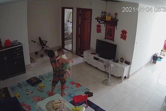 Linh tính như có ai mách bảo, người mẹ mở camera ở nhà ra xem thì phát hiện, nữ giúp việc không dỗ con mình nín khóc mà còn bế bé vào nhà vệ sinh, nghi tát thẳng mặt bé khiến bé không ngừng khóc dữ dội.