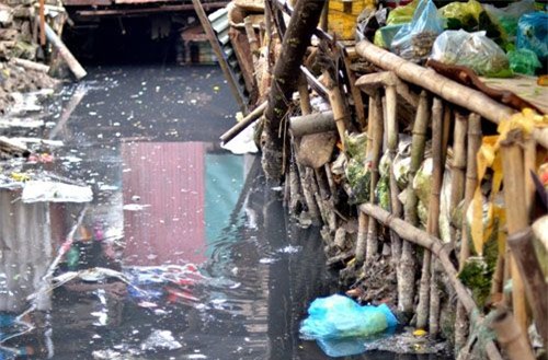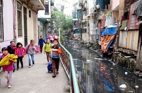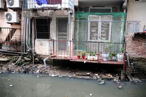 Trong khi dự án cải tạo mương Thụy Khuê chưa hoàn thành, hàng trăm hộ dân ở đây hằng ngày vẫn phải sống cùng dòng mương đen kịt và ngửi mùi xú uế nồng nặc.