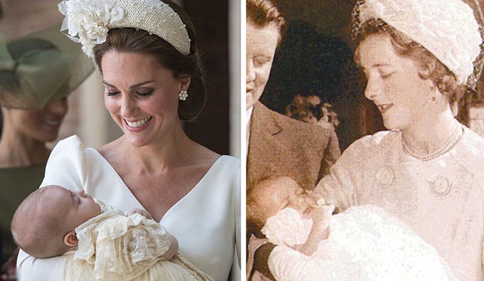 Hoàng tử Louis ngủ ngon lành trong vòng tay mẹ vào ngày lễ rửa tội 9/7 vừa qua cũng giống như Công nương Diana từng nằm ngoan trên tay mẹ tại lễ rửa tội của mình năm 1961.
