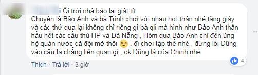 khoản đăng tải: "Nghe nói thủ môn Bùi Tiến Dũng đang cặp một ca sĩ. Người thì bảo đóng MV, người thì bảo là tình thật. Để chờ coi sao...".