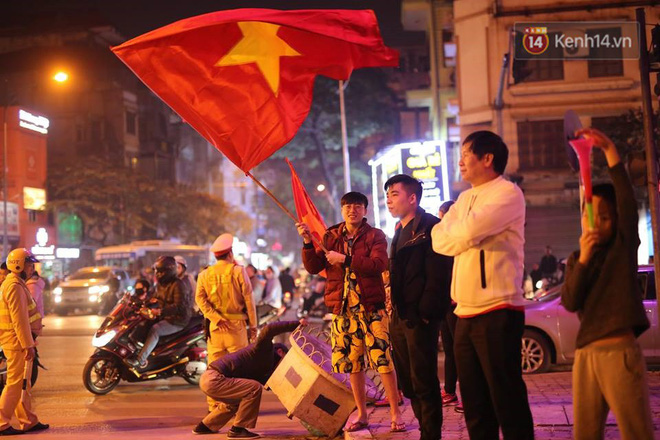 Nhiều người đổ ra đường, hò reo ăn mừng chiến thắng của các cầu thủ nước nhà. Ảnh: Việt Anh.
