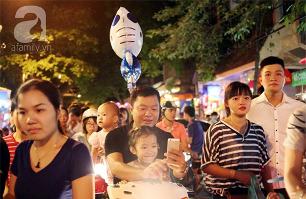 Đặc biệt, hàng ngày trước cổng các công viên hoặc dịp cuối tuần trên các tuyến phố đi bộ quanh Hồ Gươm luôn có hàng chục tiểu thương bán bóng bay bơm khí Hydro dạo với giá từ 20-30 ngàn đồng/quả.