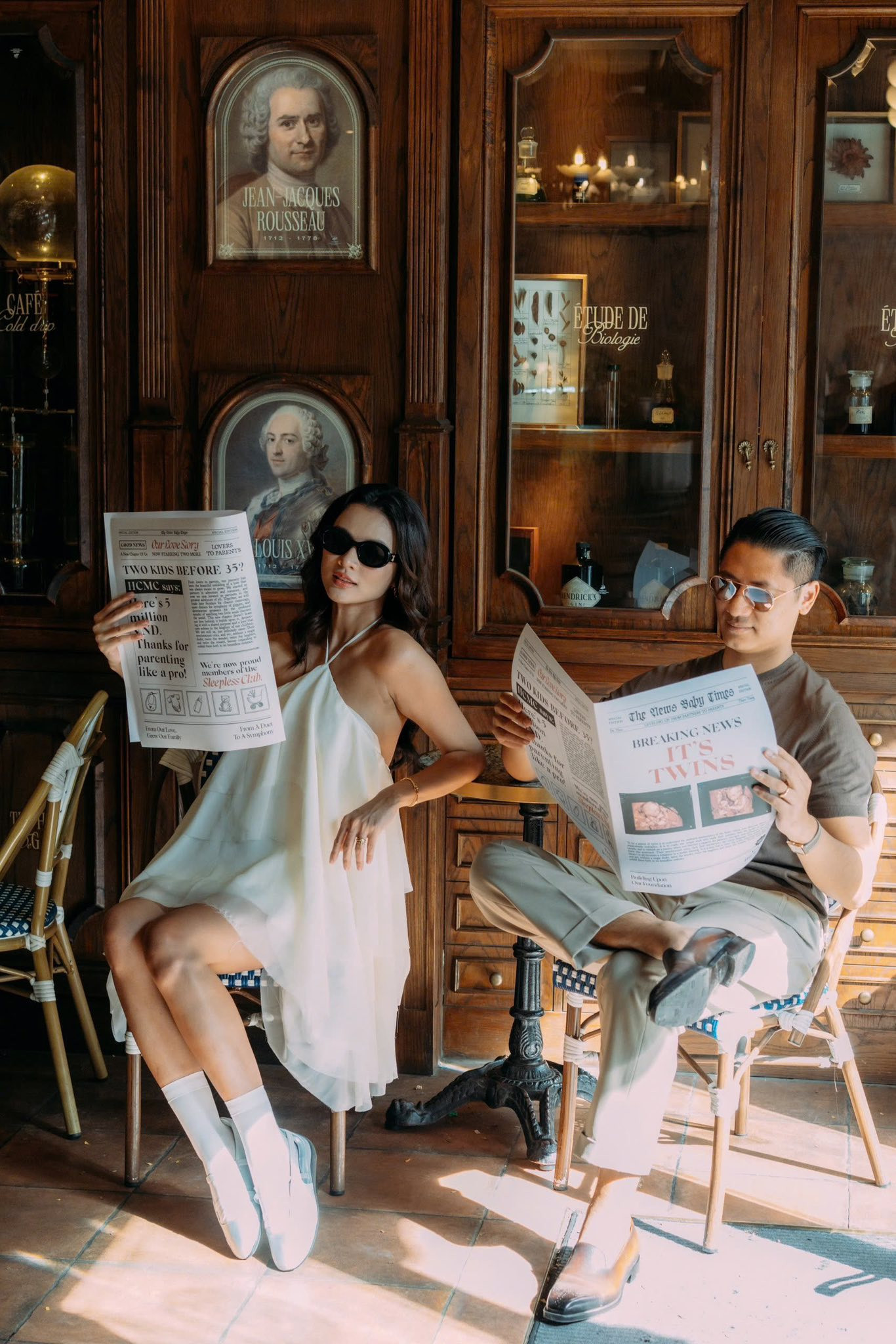 Theo đó, Thiên Trang cho biết cô đang mang song thai. Hai thiên thần nhỏ được đặt tên thân mật là Trà và Cà Phê. Bộ ảnh của nữ người mẫu cũng được khen ngợi mang phong cách Hàn Quốc nhẹ nhàng với ý tưởng khá thú vị khi in hình siêu âm hai nhóc tỳ lên báo.