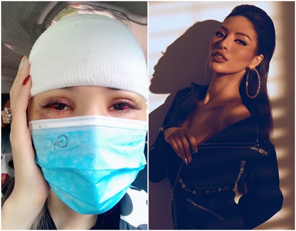 Mới đây nhất, siêu mẫu Khả Trang đăng tải hình ảnh cô băng bó đầu, bịt khẩu trang, mắt sưng húp và bị xung huyết. Cô viết: "Tụ máu mắt 2 tháng mới khỏi, tụ máu đầu một tháng mới hết cả nhà".