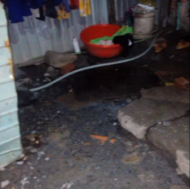 Căn nhà xập xệ là nơi sinh sống của cả gia đình chị V. ở xã Bình Mỹ.