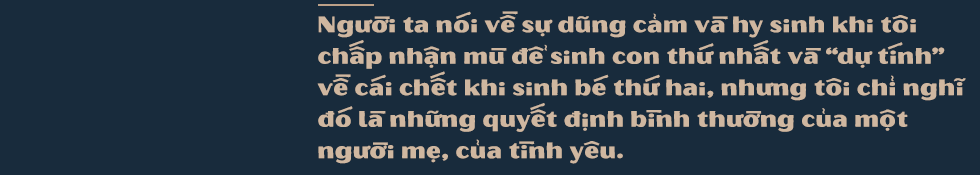 Việc giữ con và sinh con, dù phải đối mặt với muôn vàn khó khăn, với tôi là một việc bình thường, một lựa chọn mà người mẹ nào yêu con cũng không cần cân nhắc. Ai cũng có hoàn cảnh và thách thức để vượt qua, ai cũng có quyền lựa chọn cách mình bước tiếp. Tôi chọn lối con không phải hy sinh sự sống của mình để mẹ sống tiếp.