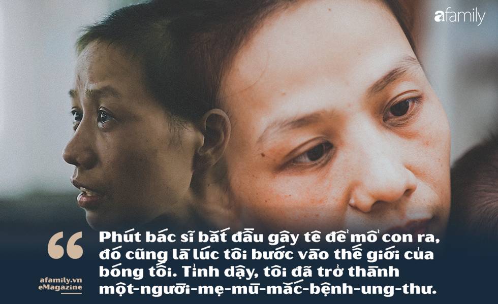 Bống được mổ khẩn cấp khi 36 tuần tuổi, nặng 2,1kg, phải nằm lồng ấp, nhưng thân thể lành lặn, khóc rất to. Còn tôi, dù chuẩn bị tinh thần để chết, nhưng đã sống sót theo một cách rất kỳ diệu. Phút bác sĩ bắt đầu gây tê để mổ con ra, đó cũng là lúc tôi bước vào thế giới của bóng tối. Tỉnh dậy, tôi đã trở thành một-người-mẹ-mù-mắc-bệnh-ung-thư.