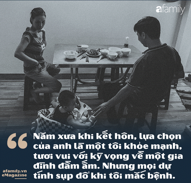 Chồng tôi có đang thực sự hạnh phúc với cuộc sống hiện tại không, tôi không dám chắc, vì năm xưa, lựa chọn của anh là một tôi khỏe mạnh, tươi vui, một kỳ vọng về gia đình không giàu có nhưng đầm ấm, cuối tuần, cuối tháng, vợ chồng con cái sẽ đưa nhau đi chơi… Nhưng mọi dự tính sụp đổ khi tôi mắc bệnh và có con cùng một lúc. Có lúc quá khó khăn, tôi khóc với Chúa: "Sao người ta có mọi thứ, lại còn khỏe mạnh, còn con, con là một người mẹ kiểu gì thế này, sao con không thể tự chăm sóc cho gia đình mình…".