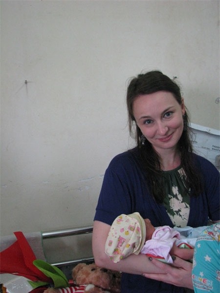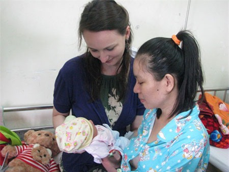 Sáng nay 7/3, nữ bác sĩ người Anh Fiona Julia Sutton đã đến Bệnh viện Phụ sản - Nhi Đà Nẵng thăm em bé chào đời trên máy bay.