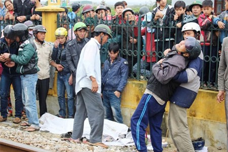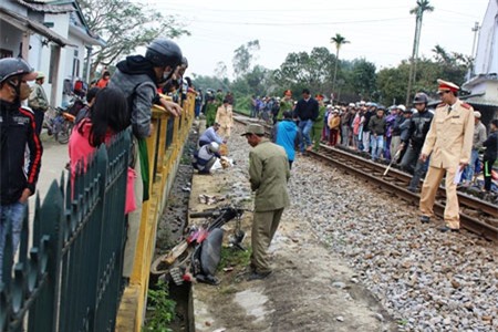 băng qua điểm giao cắt đường sắt thì bị tàu hoả di chuyển theo hướng