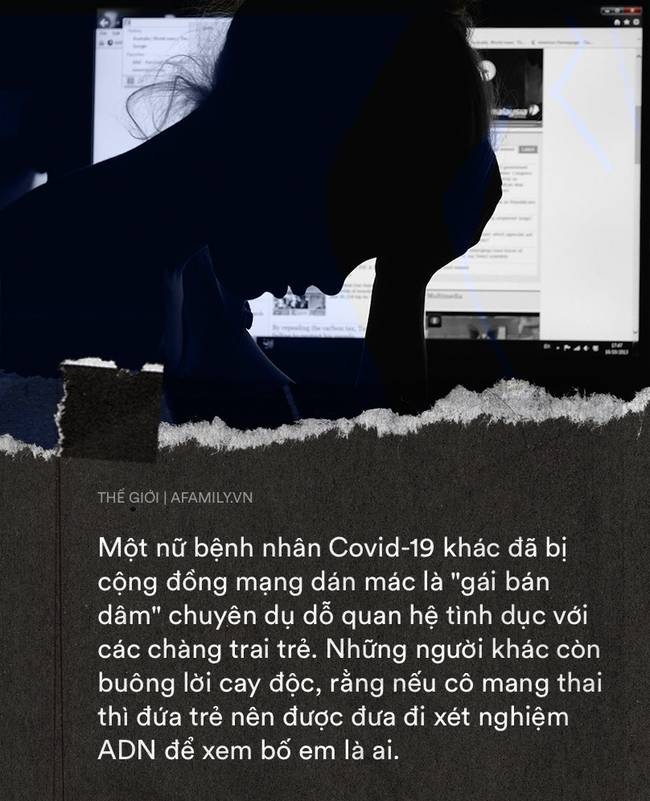 Cũng giống như Kim, một nữ bệnh nhân Covid-19 khác đã bị cộng đồng mạng dán mác là "gái bán dâm" chuyên dụ dỗ quan hệ tình dục với các chàng trai trẻ. Những người khác còn buông lời cay độc, rằng nếu cô mang thai thì đứa trẻ nên được đưa đi xét nghiệm ADN để xem bố em là ai. Dù các nhà chức trách ở Busan đã lên tiếng phản bác tin đồn nhưng không có nghĩa là sự bắt nạt trên mạng dừng lại.