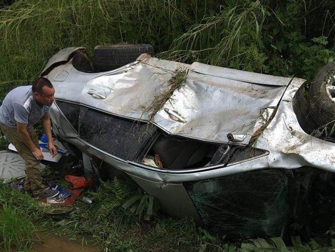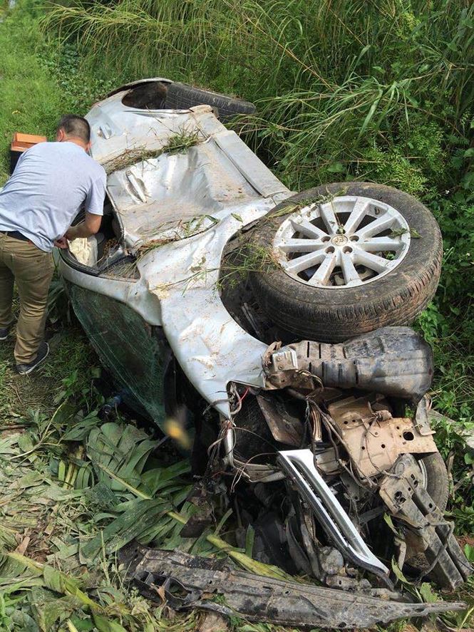 Chiếc xe bẹp dúm dưới ruộng lúa.
