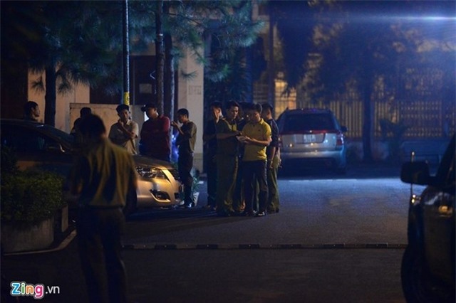 Cảnh sát làm việc với người dân ở chung cư lúc hơn 1h sáng. Ảnh: Tùng Tin. |
