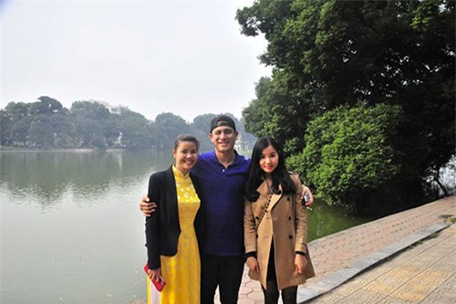 Denis Cerrato (giữa) và một số người bạn tại Hà Nội. Ảnh: Kim Ngân |