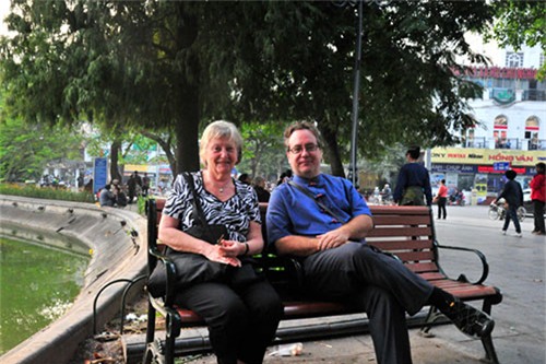 Trudel (phải) và mẹ du lịch ra Hà Nội vào dịp Tết tây. Ảnh: Kim Ngân |
