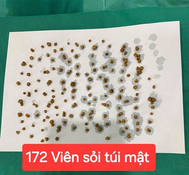 Sau 1 tuần điều trị, bệnh nhân được chỉ định phẫu thuật nội soi cắt túi mật. Trong quá trình mở túi mật của bệnh nhân, các bác sĩ bất ngờ khi phát hiện có tổng cộng 172 viên sỏi bên trong.