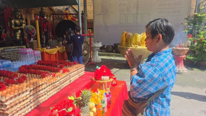 Trong buổi lễ do sư trụ trì Phra Khru Yatithammanuyut hướng dẫn, bà Rosukon đã dâng lên 50 thùng nước uống, 50 khay trứng gà và đốt pháo như một nghi thức dâng lễ.