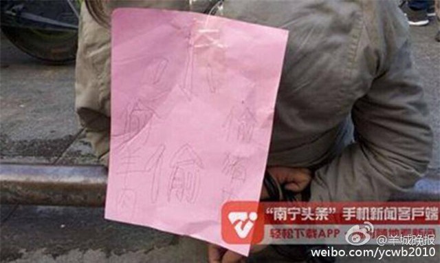 Mới đây hình ảnh người phụ nữ 40 tuổi bị trói và sỉ nhục bằng cách đeo một chiếc biển chứng minh mình ăn trộm trên lưng ngay giữa chợ đang gây xôn xao dư luận Trung Quốc.