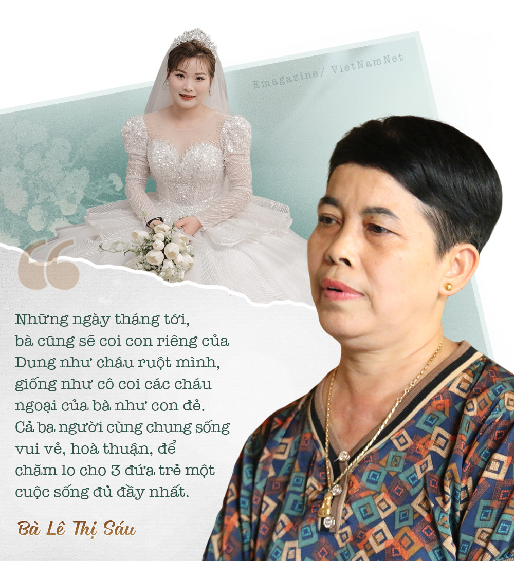 Những ngày tháng tới, bà cũng sẽ coi con riêng của Dung như cháu ruột mình, giống như cô coi các cháu ngoại của bà như con đẻ. Cả 3 người cùng chung sống vui vẻ, hoà thuận, để chăm lo cho 3 đứa trẻ một cuộc sống đủ đầy nhất.