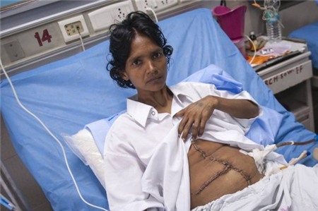 Cô Nunwati Devi sau ca phẫu thuật cắt bỏ khối u khổng lồ.