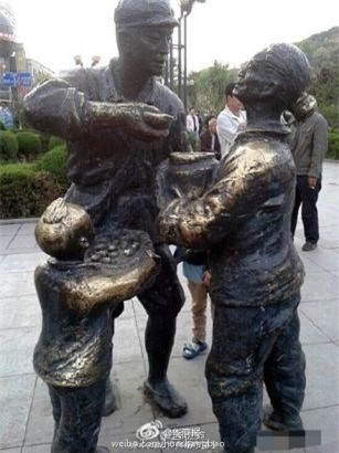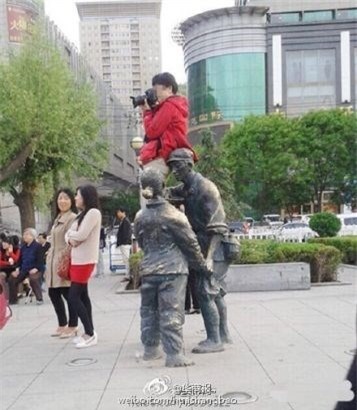 Sự việc xảy ra vào chiều 7.5 khi rất nhiều người tụ tập xem biểu diễn điệu nhảy tryền thống Yangko của Trung Quốc dưới chân đồi Baota ở thành phố Diên An, tỉnh Thiểm Tây. Để có được vị trí quan sát màn múa rõ hơn, một phụ nữ đã trèo và ngồi trên đầu bức tượng lính Hồng quân gần đó.