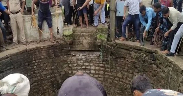 Người phụ nữ không may bị rơi xuống giếng sâu.