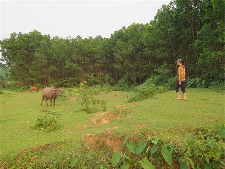 Cậu bé Trần Xuân Hiếu vẫn vô tư giúp cha mẹ chăn trâu |