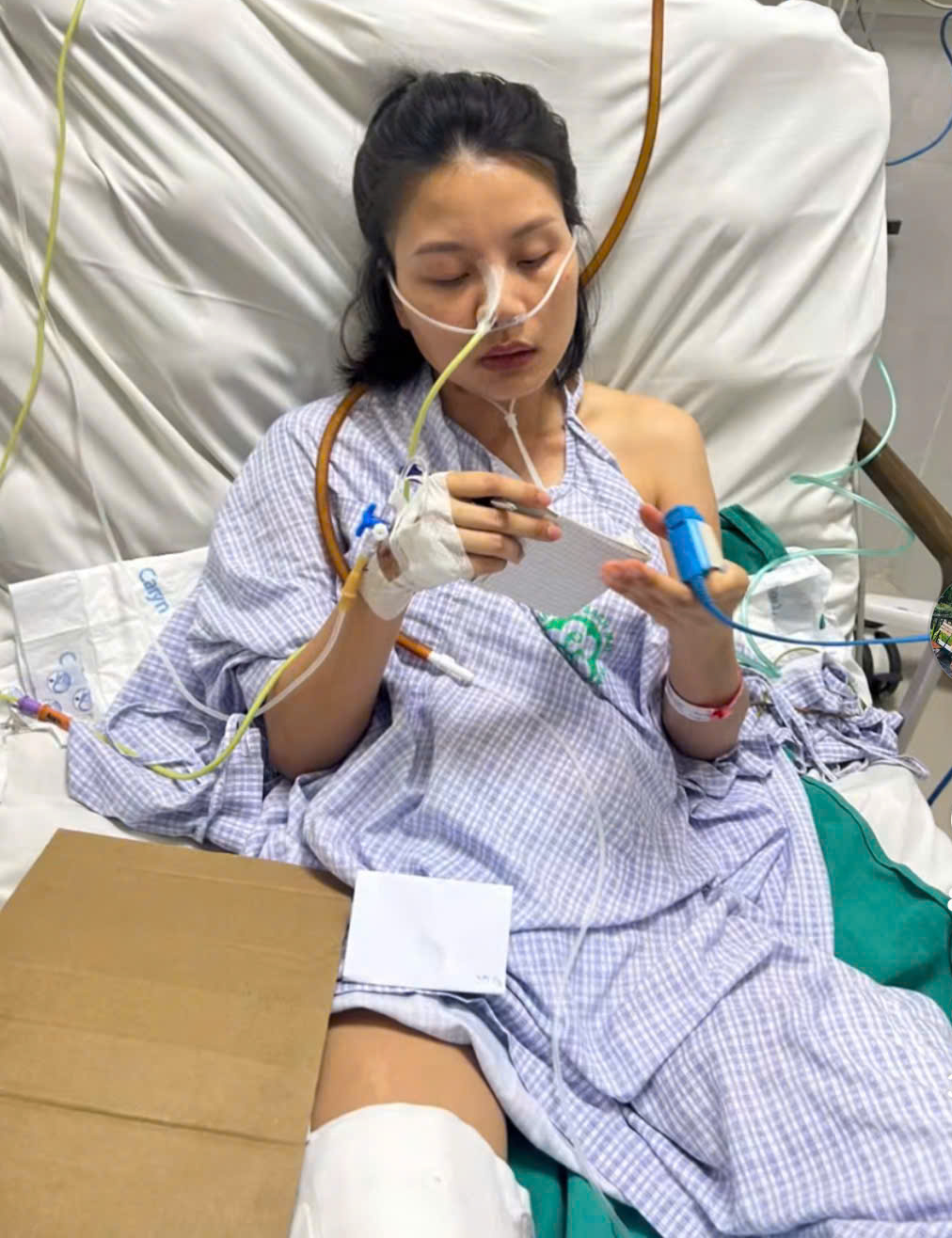 Sau 3 ngày cấp cứu đột quỵ, chị Huyền rơi vào suy tim còn 13%, phải chuyển sang đơn vị tim mạch. Tim ổn định thì chị lại ngưng thở khi ngủ.